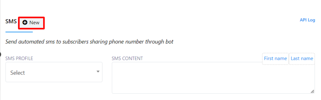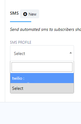 - Click the `New` button next to the SMS section. This will take you to the SMS integration.